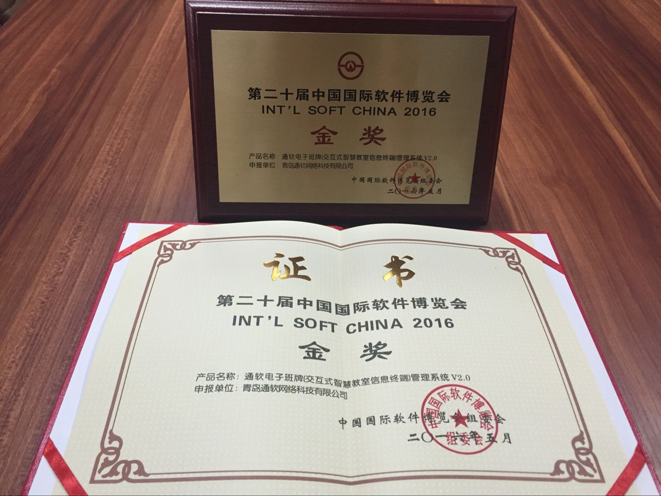 熱烈慶祝我公司榮獲第二十屆中國國際軟件博覽會(huì )組委會(huì )辦公室頒發(fā)的軟件產(chǎn)品金獎! 近日,由工業(yè)和信息化部主辦,國家發(fā)展和改革委員會(huì )、科學(xué)技術(shù)部、國家外國專(zhuān)家局和北京市人民政府參與的第二十屆中國國際軟件博覽會(huì )在北京圓滿(mǎn)落幕,青島通軟網(wǎng)絡(luò )科技有限公司的產(chǎn)品“通軟電子班牌(交互式智慧教室信息終端)管理系統V2.0”榮獲第二十屆中國國際軟件博覽會(huì )金獎。 此次獲獎的通軟電子班牌(交互式智慧教室信息終端)管理系統V2.0是青島通軟公司多年跟蹤高考改革試點(diǎn),積累大量經(jīng)驗研發(fā)出的一套內置于電子班牌設備的管理系統,緊貼“新高考,新課改”大環(huán)境下學(xué)校對學(xué)生的管理需求,全方位實(shí)現了學(xué)生在校的立體化管理。 軟博會(huì )是軟件和信息技術(shù)服務(wù)業(yè)領(lǐng)域規模最大、最具影響力、持續時(shí)間最長(cháng)的軟件專(zhuān)業(yè)展會(huì )。今年舉辦的第二十屆軟博會(huì )以“促進(jìn)兩化深度融合,服務(wù)制造強國建設”為主題,集中展示軟件支撐“中國制造2025”,“互聯(lián)網(wǎng)+”等標志性成果。作為中國智慧校園一體化方案的領(lǐng)航者,青島通軟始終秉承創(chuàng )新、求實(shí)、熱情的服務(wù)理念,為用戶(hù)提供高質(zhì)量的產(chǎn)品、技術(shù)支持以及產(chǎn)品增值服務(wù),以先進(jìn)的信息技術(shù),持續為客戶(hù)創(chuàng )造最大價(jià)值,發(fā)揮企業(yè)在智慧校園領(lǐng)域的核心作用。